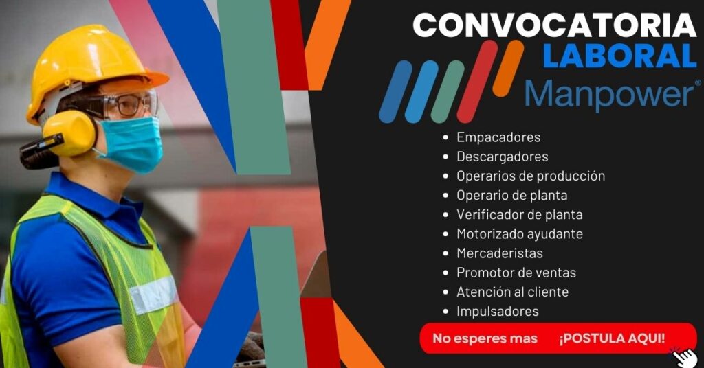 ¡Manpower te invita a unirte a nuestro equipo y ser parte de una compañía líder en recursos humanos con más de 70 años de experiencia! 🌟 Descubre una amplia gama de oportunidades en diferentes áreas y sectores laborales, desde empleos temporales hasta permanentes. 💼💪 Nuestro enfoque está en el desarrollo profesional y la inclusión, conectando talentos con empresas de renombre y fomentando un ambiente de crecimiento y aprendizaje continuo. 🌱🚀